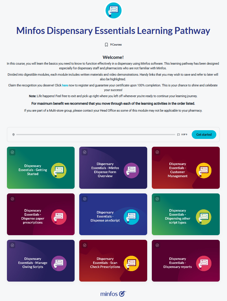 In this course, you will learn the basics you need to know to function effectively in a dispensary using Minfos software. This learning pathway has been designed especially for dispensary staff and pharmacists who are not familiar with Minfos.