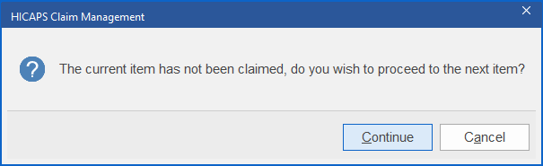 Click Yes to continue with the claim or No to return HICAPS Claim Management window.