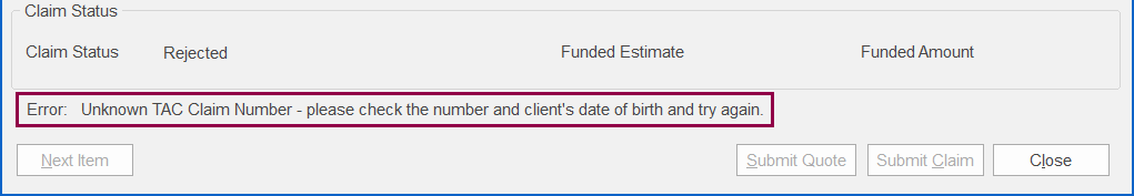 Note If the Claim Status is Rejected, review the Error information provided, and resubmit the claim again if required.