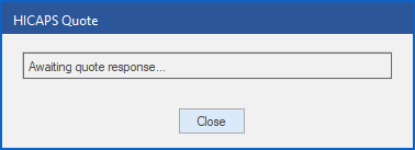 Note: If you close the HICAPS Claim Management window after a quote has been run, the following HICAPS Claim Management prompt is displayed:Click Cancel to return to the HICAPS Claim Management window and continue with the claim.