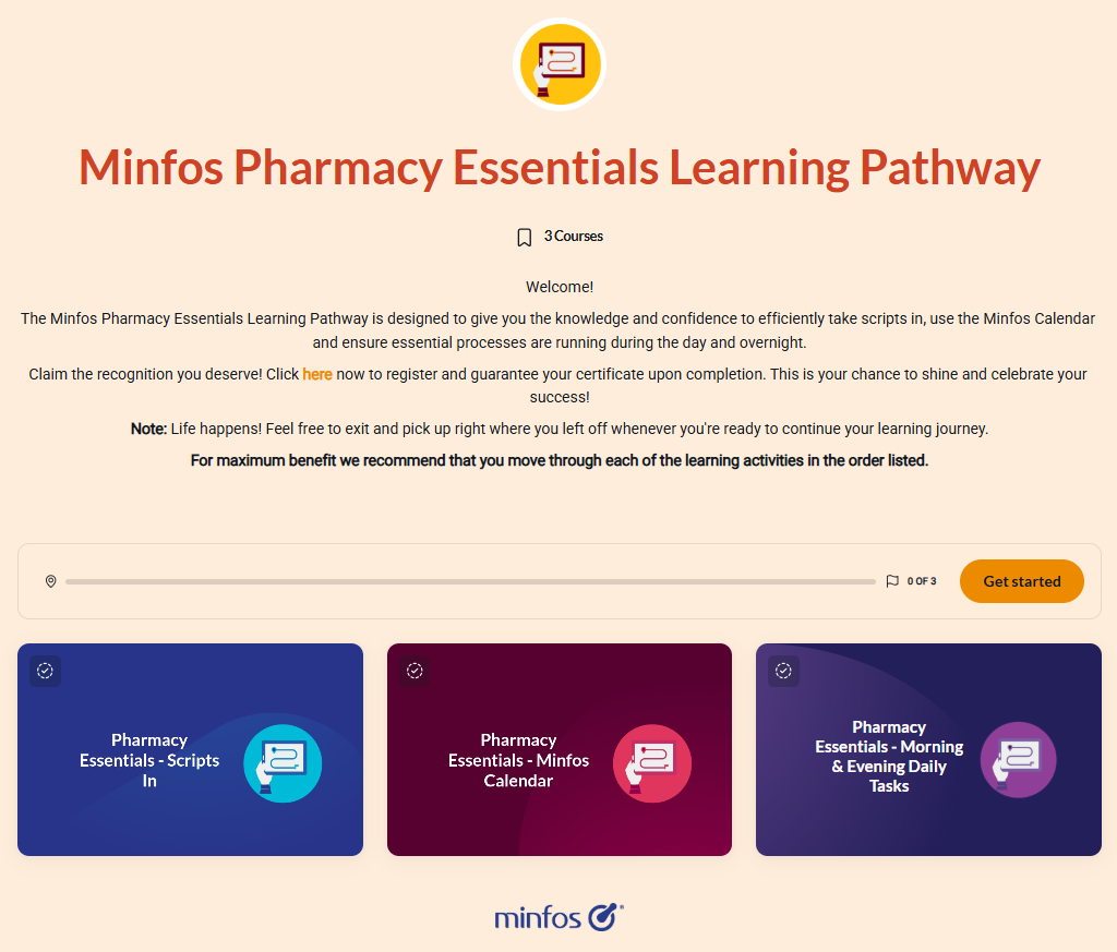 Minfos Pharmacy Essentials Learning Pathway