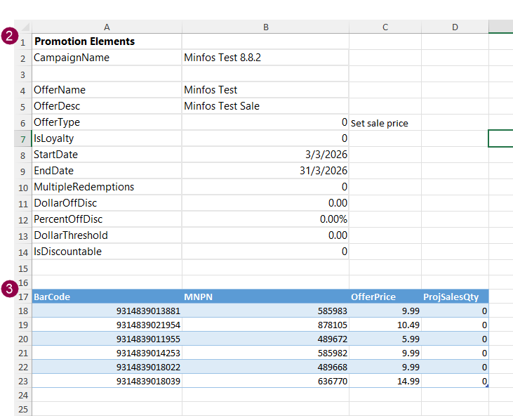 - Download the Minfos Promotion Template Excel file. It can be downloaded from the end of this article.