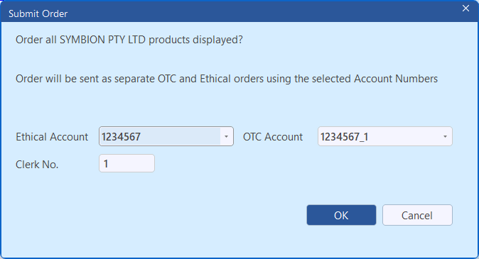 In Supplier Editing → Order Settings, select the appropriate Ethical Account and OTC Account (when available for that supplier).