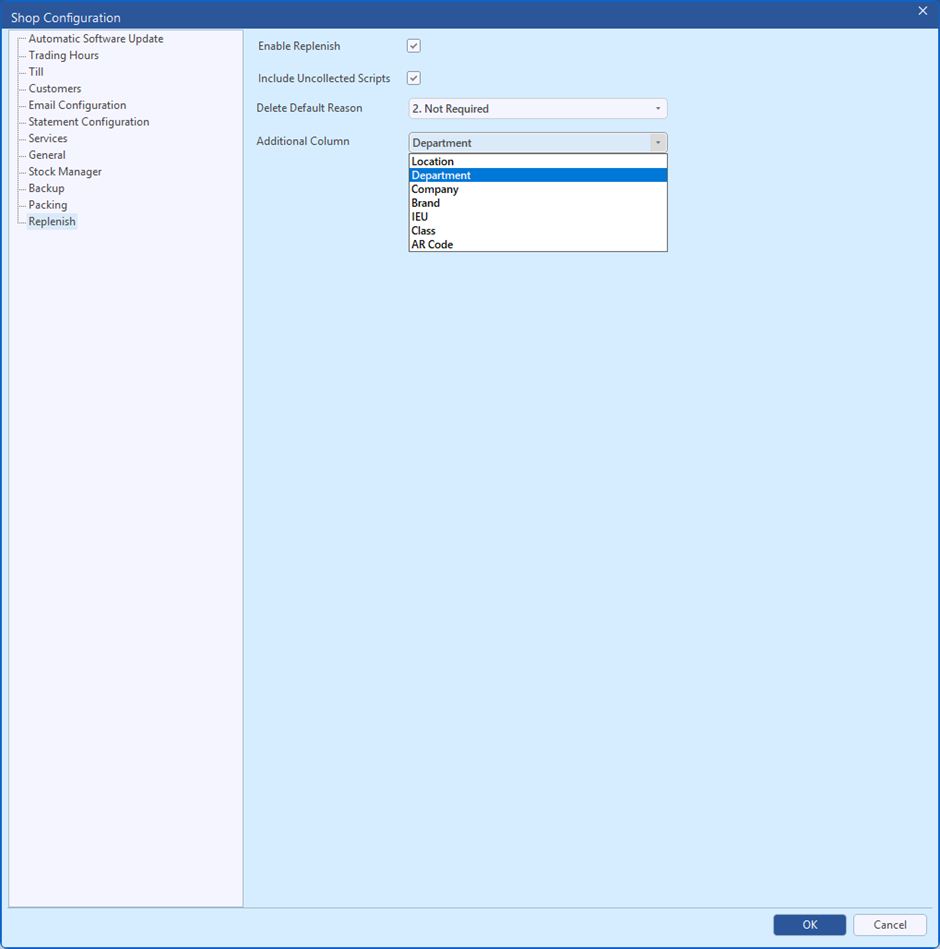 In the Replenish screen, you can now filter the product list to view Ethical, OTC items or All items.