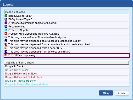 You can now see a clear 60-day dispensing indicator in the Possible Matches Found window for eligible PBS items. This makes it easier to identify 60-day items and select the correct listing, helping reduce avoidable rejections and safety net consequences caused by choosing the wrong listing.