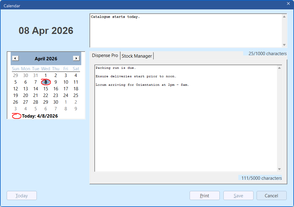 You’ll notice the calendar window in Dispense is now consistent in size with the calendar displayed in Stock Manager. This reduces unnecessary scrolling and makes date selection easier - especially on busy dispense days.