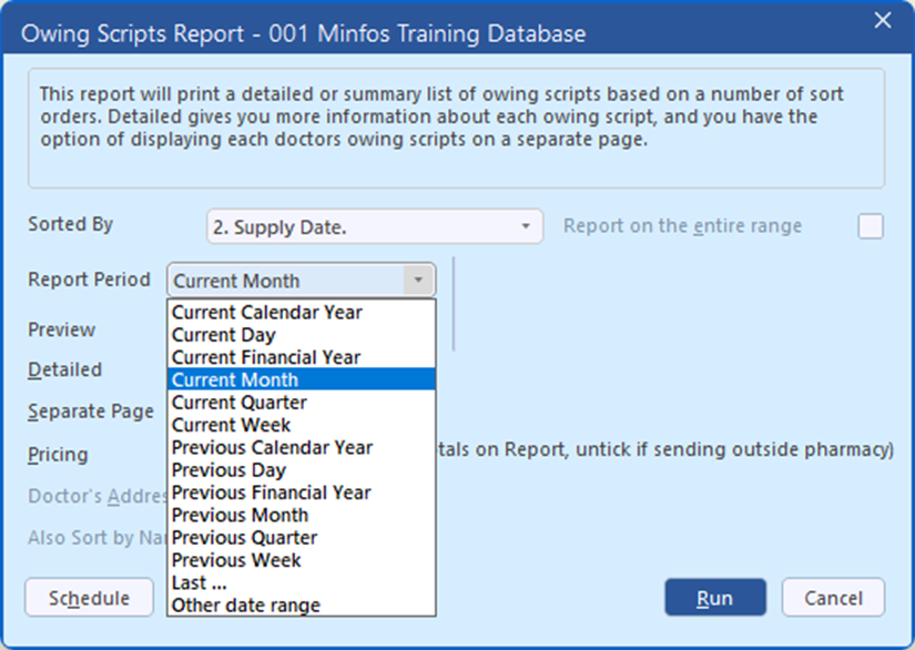 You can now schedule the Owing Scripts report to run automatically, helping you stay on top of outstanding owings without needing to remember to run the report manually.