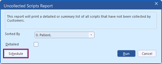 You can now schedule the Uncollected Scripts report so it runs automatically and is delivered to nominated recipients. This helps you follow up uncollected items more reliably - especially when responsibilities are shared across staff or shifts.