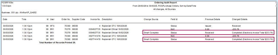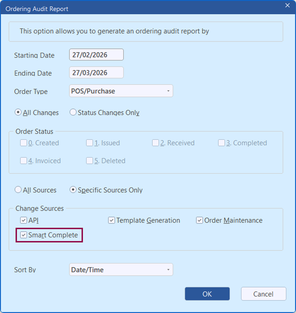 You can now more easily track orders that were completed automatically through Smart Complete. The Ordering Audit Report records Smart Complete completion activity so you can confirm what happened (and when) without guesswork.