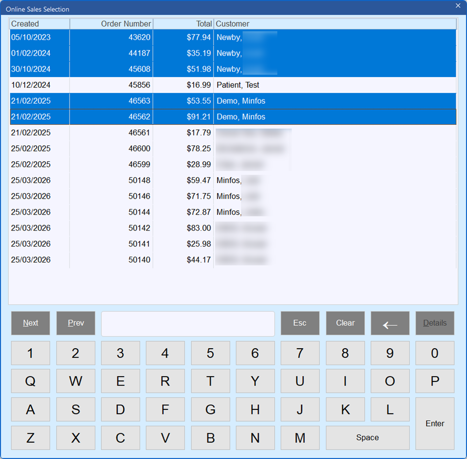 If your pharmacy processes online orders for in-store payment, you can now bring multiple online orders into a single Till sale (up to 10 orders at a time). This makes checkout faster when a customer arrives with more than one online order to pay for - reducing repeated payment steps and improving the customer experience.