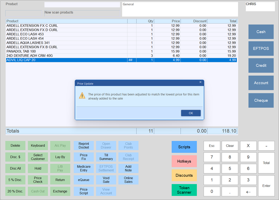 Minfos also applies a consistent “lowest price wins” rule across the combined basket, helping ensure pricing stays fair and consistent when the same item appears across multiple orders and/or is scanned again at the counter.